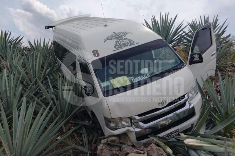 Después del accidente, la unidad de la línea «Didxhazaa» detuvo su carrera y quedó en unos terrenos de sembradío.