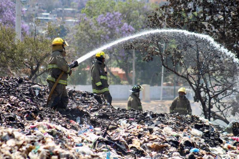 El personal de Bomberos acudió con dos autobombas, una ambulancia y dos pipas y en las acciones para garantizar la seguridad de las personas participaron también efectivos de la Policía Estatal, quienes arribaron con el vehículo táctico “Godzilla” para combatir el incendio que se inició en un tiradero de basura ubicado cerca del lugar conocido como “El Playón”.