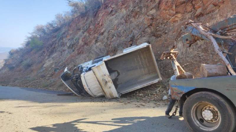 Solo daños materiales dejó la volcadura de un volteo, sobre la carretera que conduce a Concepción Pápalo en la Cañada de Oaxaca.