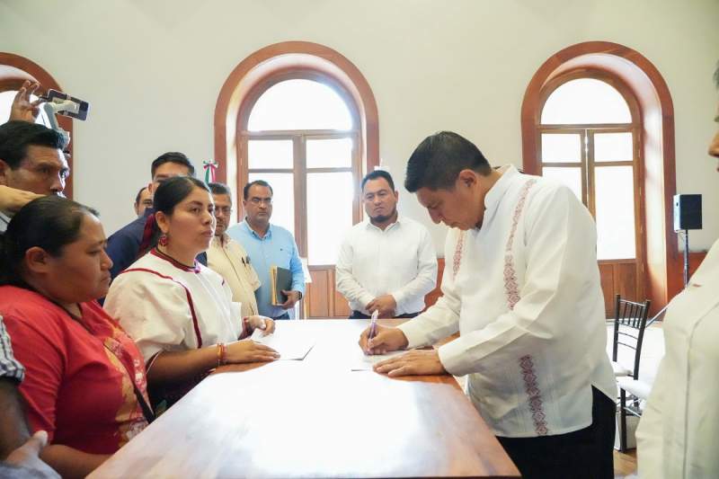 Oaxaca de Juárez, Oax. 1 de mayo de 2023.- El Gobernador Salomón Jara Cruz recibió el pliego petitorio de la dirigencia de la Sección 22 del Sindicato Nacional de Trabajadores de la Educación (SNTE) y en un ambiente de respeto y dialogo, ofreció que su Gobierno mantendrá las puertas abiertas y la voluntad para dar respuesta a sus demandas.