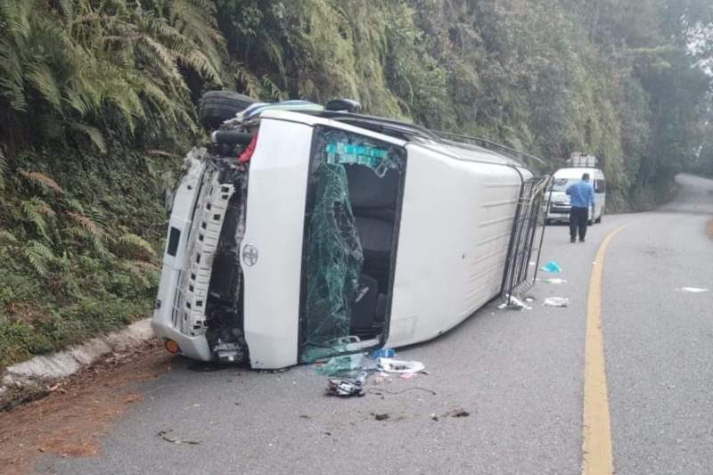 La mañana de este viernes, se registró la volcadura de una urvan de pasajeros en la carretera federal 175, en el tramo Oaxaca-Tuxtepec.