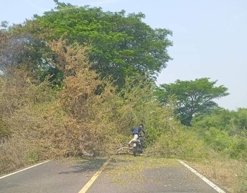 Una sorpresa recibió un motociclista, luego que se le viniera un árbol encima.