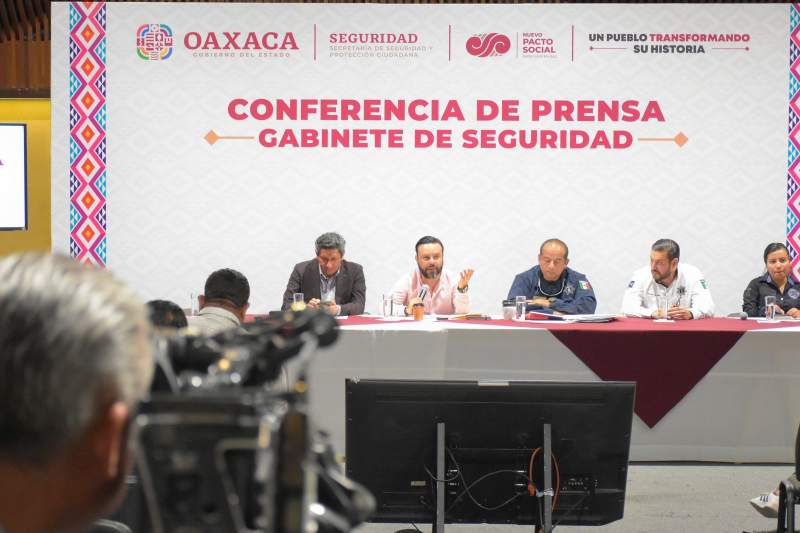 Así se dio a conocer durante la Conferencia de Prensa de Seguridad encabezada por la titular del Secretariado Ejecutivo del Sistema Estatal de Seguridad Pública Karina Barón Ortiz, y los secretarios de Gobierno, Jesús Romero López; de Seguridad Pública y Protección Ciudadana, Iván García Álvarez; del subsecretario de Prevención y Reinserción Social de la SSPC, Roberto Claudio Castillo Ramírez, y el fiscal general del Estado de Oaxaca, Bernardo Rodríguez Alamilla.