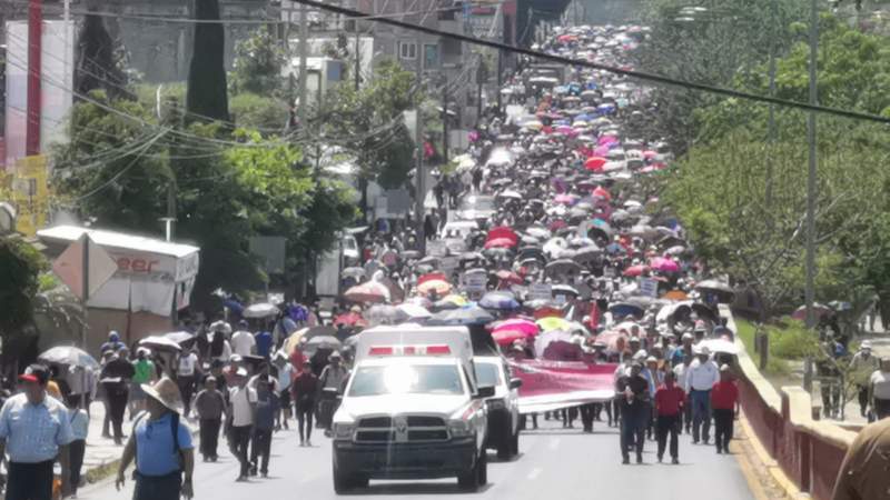 Por un lado, miles de integrantes de la Sección 22 de la Coordinadora Nacional de Trabajadores de la Educación (CNTE), salieron en marcha esta mañana del monumento a Juárez del crucero de Huayápam, con dirección al Zócalo de la ciudad de Oaxaca.