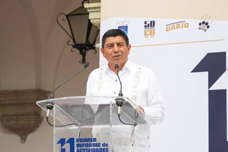 Ante exrectores de la institución, 180 consejeras y consejeros universitarios acreditados legalmente, personal administrativo, profesorado y estudiantes, destacó que desde el Gobierno estatal se trabaja para construir un nuevo rumbo para la entidad, con más igualdad y bienestar, pero sobre todo con más educación, compromiso y altura de miras, a fin de escribir una narrativa de un Oaxaca más justo.