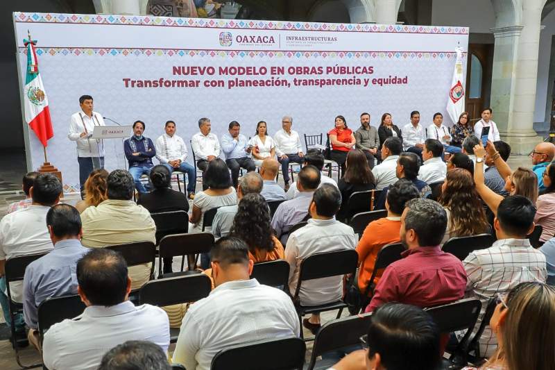 Acompañado de integrantes del gabinete legal y ampliado, dijo que la premisa de su Gobierno en materia de infraestructura es generar desarrollo con equidad, justicia y cuentas claras, basado en la planeación, la transparencia, equidad e inclusión, para transitar en la ruta de la construcción del desarrollo, la justicia y la reparación histórica de los pueblos y comunidades de Oaxaca.