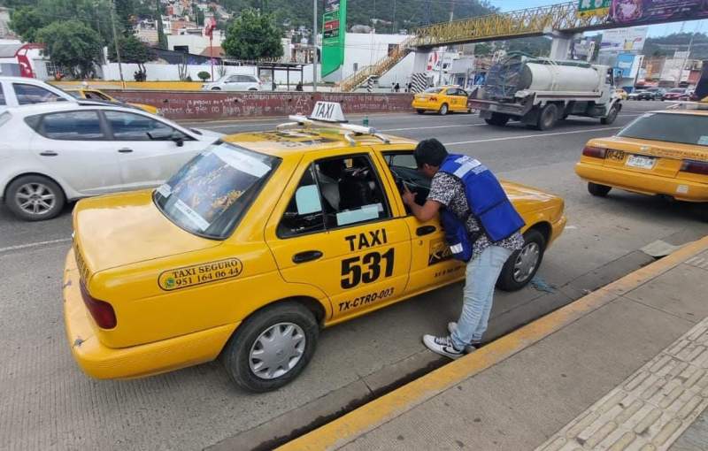 Santa Lucía del Camino, Oax.19 de julio de 2023.- Para garantizar que los taxis que operan en la ciudad de Oaxaca respeten las medidas establecidas para su operación y seguridad, la Secretaría de Movilidad realiza operativos de supervisión en diversos puntos de la capital.