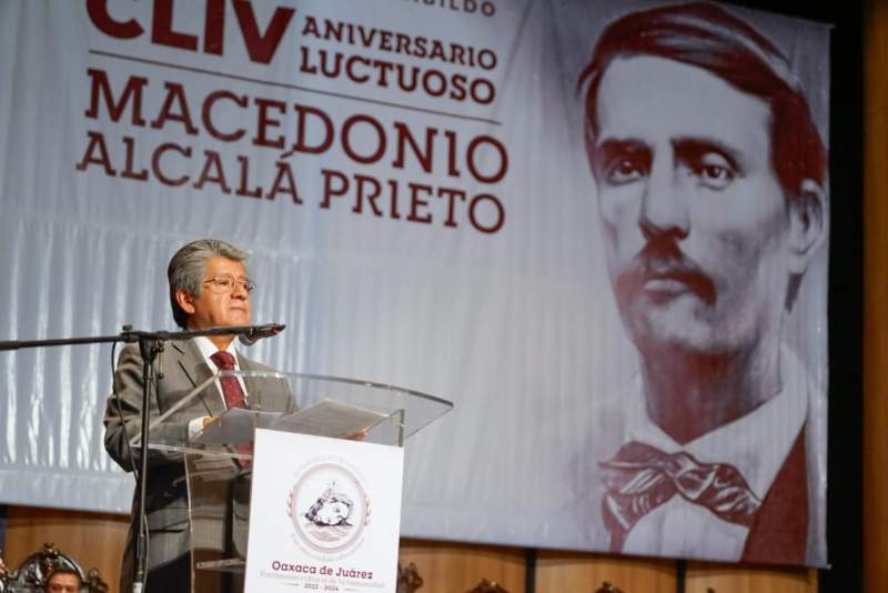 Oaxaca de Juárez, 24 de agosto de 2023.- El municipio de Oaxaca de Juárez conmemoró de manera solemne el 154 aniversario luctuoso del insigne compositor y músico oaxaqueño, Macedonio Alcalá Prieto. La emotiva sesión contó con la destacada presencia de las y los integrantes del honorable Cabildo e invitados de honor, quienes se reunieron en el majestuoso teatro “Macedonio Alcalá”, para recordar la vida y obra de este ilustre artista.