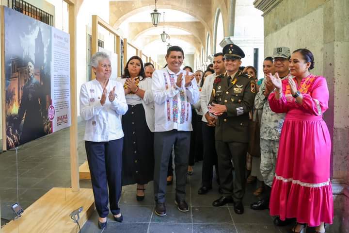 Con estas muestras fotográficas se impulsan los valores cívicos y se honra la memoria de mujeres, hombres y las instituciones que han hecho grande a México, destacó el Mandatario Oaxaqueño al exterior de la casa del pueblo.
