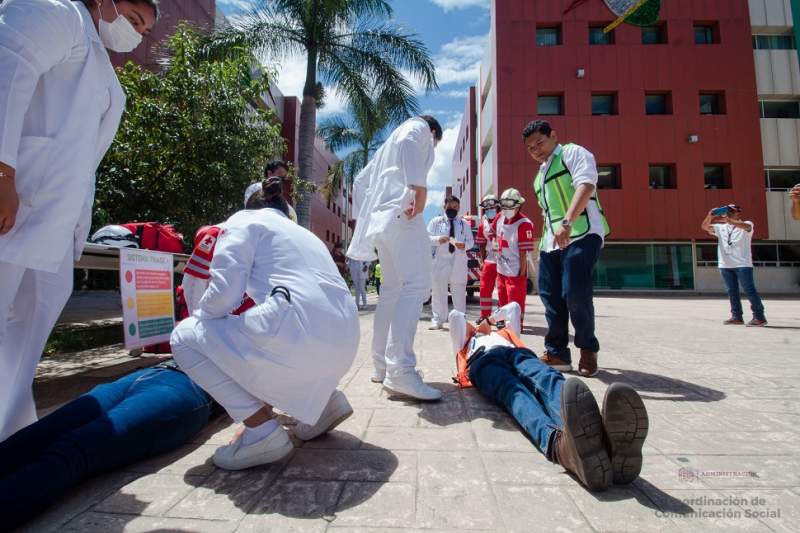 El simulacro fue coordinado por el Departamento de Seguridad y Gestión Integral del Riesgo perteneciente a la Secretaría de Administración que encabeza Antonino Morales Toledo, y participó el funcionariado y personas usuarias a este complejo.
