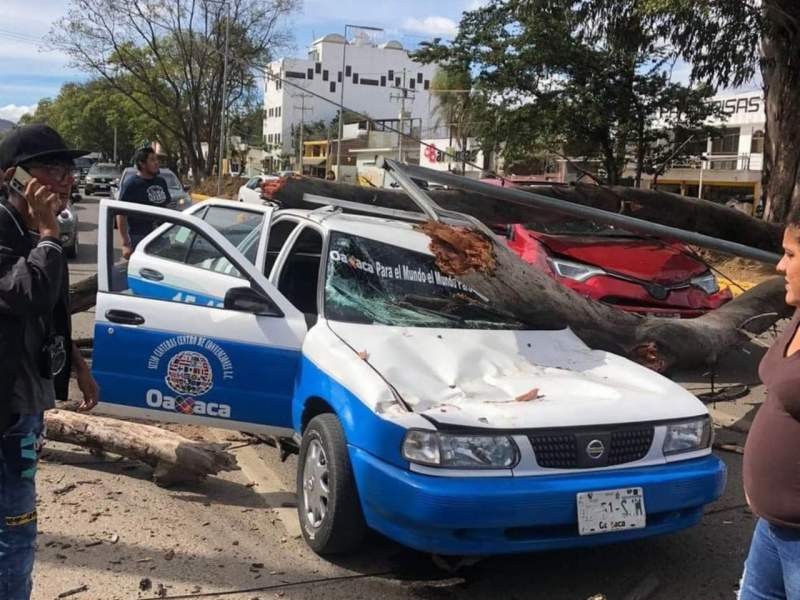 La caída de un árbol sobre un taxi y una camioneta particular en San Sebastián Tutla, dejó a una mujer lesionada quien fue atendida inmediatamente.