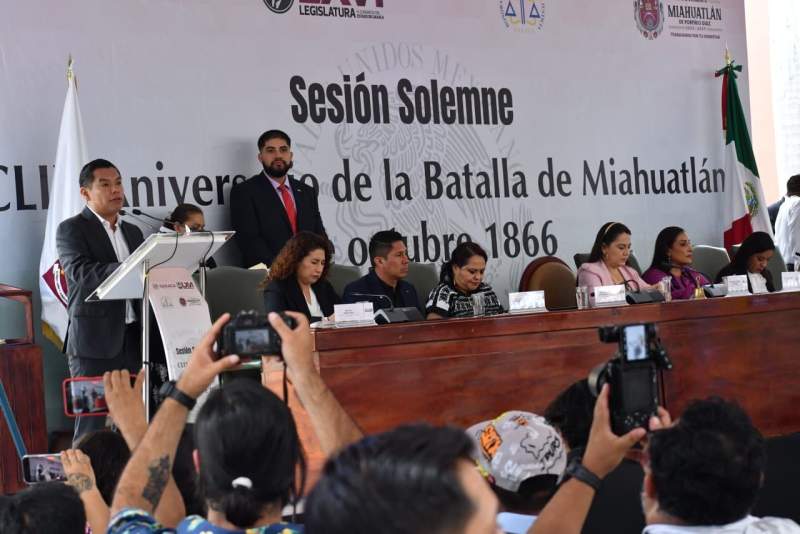 El Presidente de la Jucopo, destacó que el Congreso local se hace presente en Miahuatlán de Porfirio Díaz para reafirmar que nuestra historia no es pasado muerto, sino herencia viva, “la Batalla de Miahuatlán nos recuerda que los pueblos se engrandecen cuando defienden con dignidad su derecho a existir libres y soberanos”.